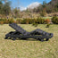 Reposera reclinable de respaldo recto y regulación en sección de piernas.