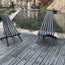 Silla de descanso, de baja altura y plegable. De diseño limpio pero resistente, reforzada con perfiles metálicos.